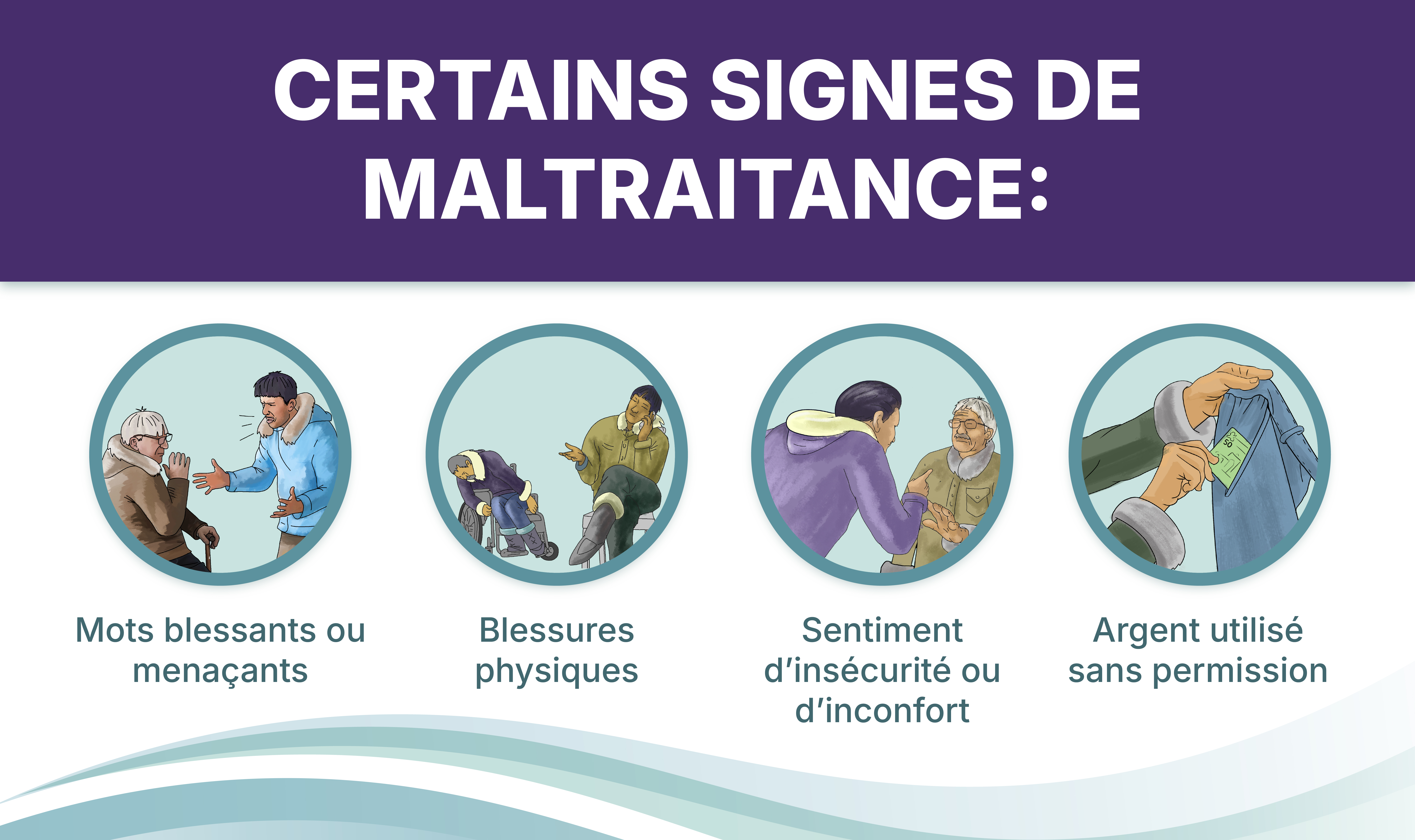 - Ligne Aide Abus Aînés : 1-888-489-2287 (anglais / français / inuktitut sur demande)