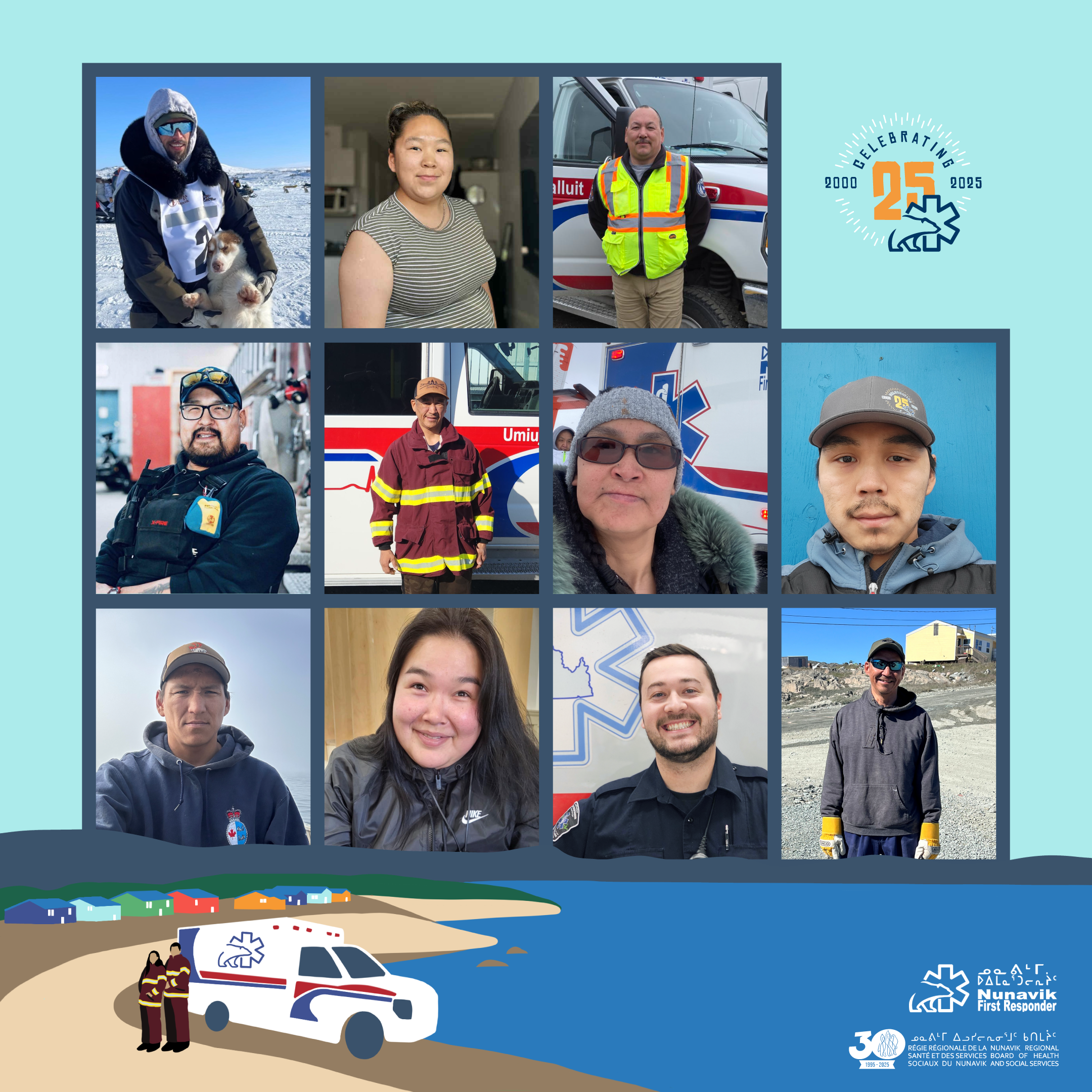 En 2025, la Régie régionale de la santé et des services sociaux du Nunavik célébrait avec fierté le 25e anniversaire du programme des premiers répondants du Nunavik par l’entremise de Briller en service : Les premiers répondants du Nunavik. Cette campagne, qui durera toute l’année, rend hommage au dévouement, à la résilience et à l’importante contribution des premiers répondants qui veillent à la sécurité et au bien-être des Nunavimmiut.